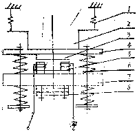 1)減振器(2)槽體(3)鐵(4)底座(5)鐵心(6)彈簧(7)質(zhì)體(8)配重