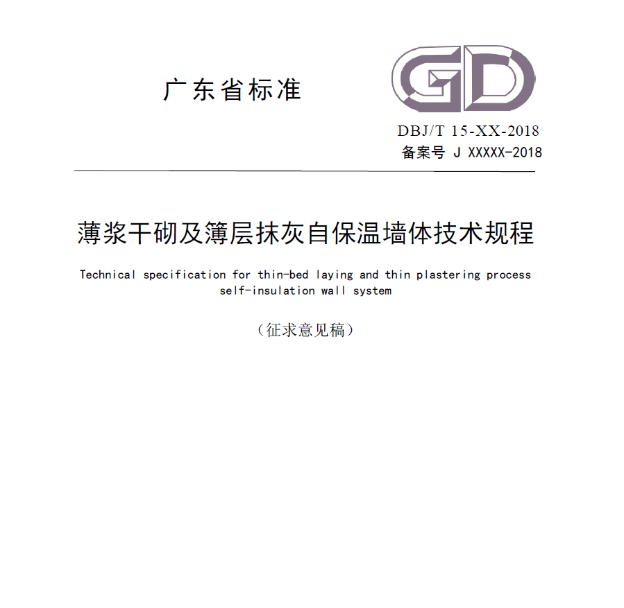 廣東省標(biāo)準(zhǔn)《薄漿干砌及簿層抹灰自保溫墻體技術(shù)規(guī)程》(征求意見稿).pdf